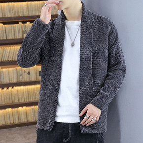 外贸货源 雪尼尔无扣西装领针织开衫男 2021春季...