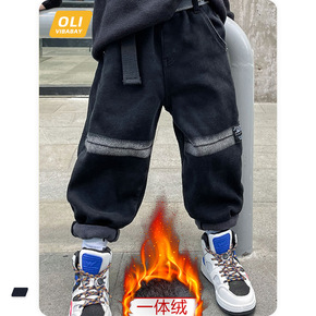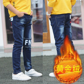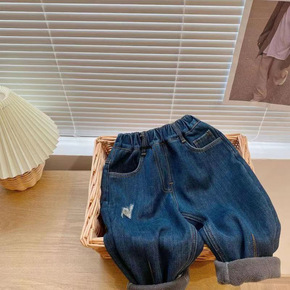 加绒加厚童装牛仔裤子男女韩版中性大童修身牛仔童裤厂...