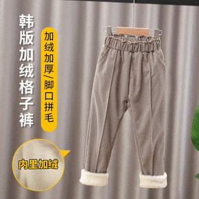 男女童裤子2021秋冬新款中大童韩版厚绒加绒休闲裤...