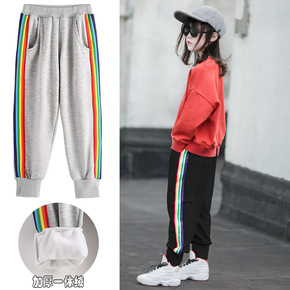 女童加绒裤子韩版宽松纯色休闲裤洋气束脚裤运动裤一体...
