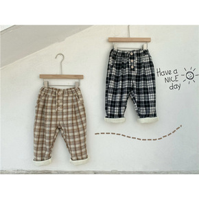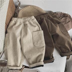 林系文艺范~儿童大口袋灯芯绒加绒厚保暖休闲裤男女宝...
