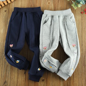 TW小熊童装21款秋冬季韩版女童加绒绣花休闲裤TK...