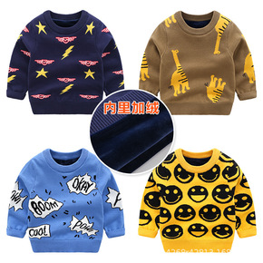 男童女童加绒毛衣 冬季新款儿童毛线衣童装加厚针织衫...