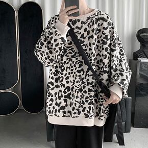 设计感小众oversize豹纹圆领卫衣男秋冬季潮牌...