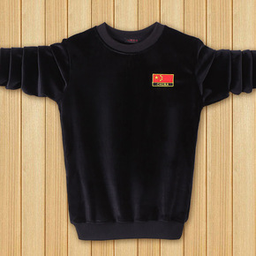 冬季双面绒卫衣 保暖男长袖T恤黑加厚圆领打底衫军迷...