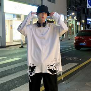 大码男装纯色长袖T恤男秋季宽松显瘦体恤加肥加大胖子...