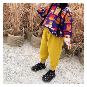 春秋新款童装女童儿童宝宝运动裤幼儿园黄色粗纹路卫衣...