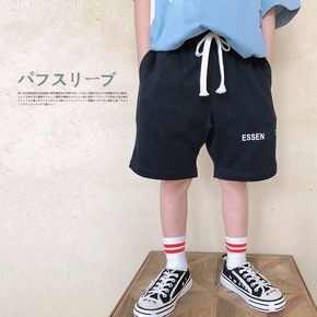 日系潮牌童装2022新款 男童毛圈针织短裤儿童字母...