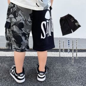 2022夏季新款日系潮牌童装 男童宝宝裤子 迷彩拼...
