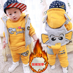 韩版卡通儿童卫衣三件套加绒加厚宝宝运动套装连帽休闲...