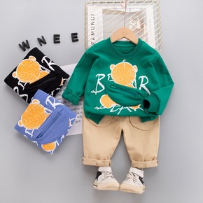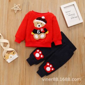 跨境 新款男/女童宝宝小熊卫衣卫裤两件套...