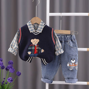 童装男童春装套装2022新款春秋儿童洋气三件套1-...
