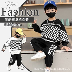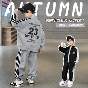 儿童运动男童酷帅套装2022新款秋季中大童洋气压花...