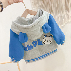 男童拉链衫外套春秋2021秋装儿童卡通抓绒连帽卫衣...