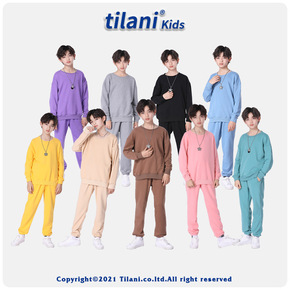 TILANI童装欧美潮牌儿童纯色毛圈棉圆领长袖卫衣...