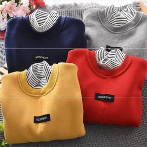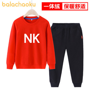 AD男童卫衣圆领薄绒套装秋冬儿童女童大童中童装20...