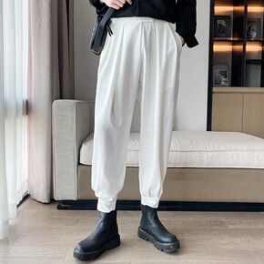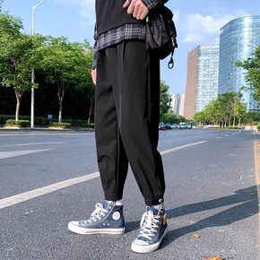 春秋魔术贴裤子男垂感九分西装休闲裤工装哈伦裤束脚粘...