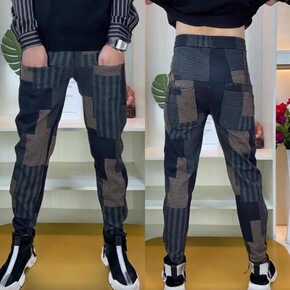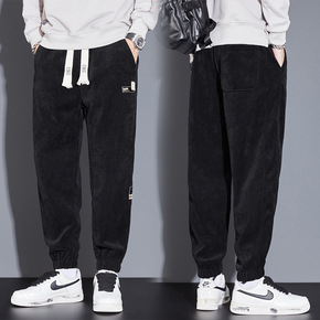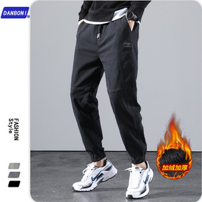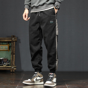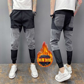 2022秋冬加绒男士拼接休闲裤修身小脚裤男束脚哈伦...