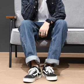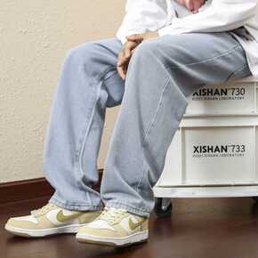 秋季日系中腰垂感直筒牛仔裤男潮牌宽松工装裤棉/棉裤...