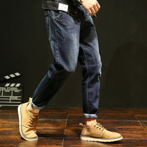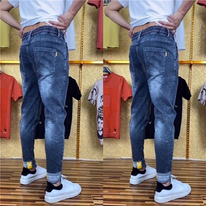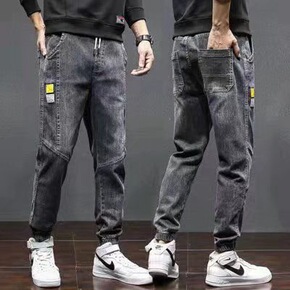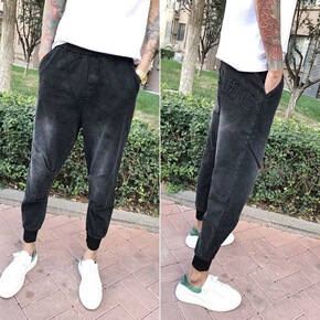 春季新款牛仔裤男宽松长裤哈伦裤男韩版束脚裤社会精神...