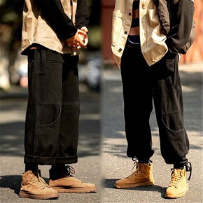 工装裤子男春秋季潮牌韩版哈伦裤阔腿裤宽松直筒九分休...