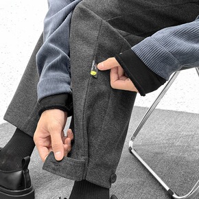 搭配马丁靴的裤子男韩版毛呢料西装裤直筒宽松春秋休闲...