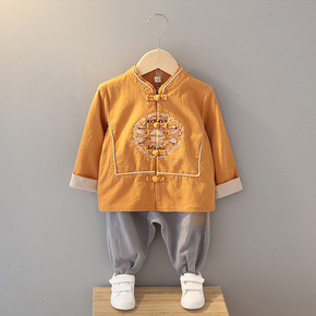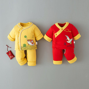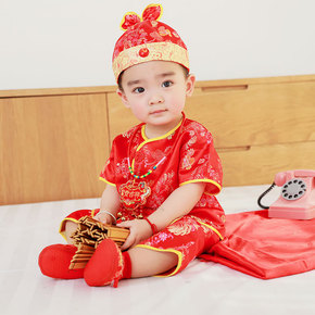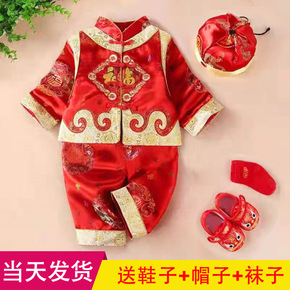 中国风秋季长袖唐装儿童中式红色喜庆百天宝宝衣服周岁...