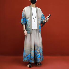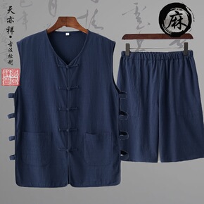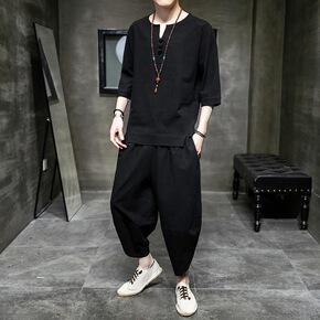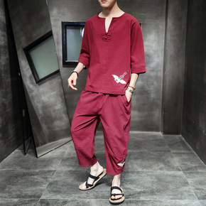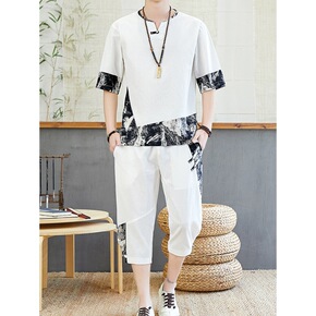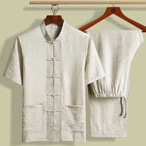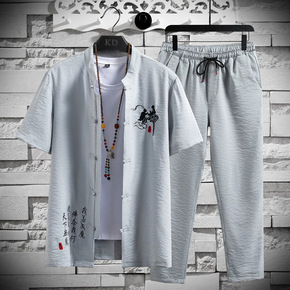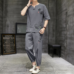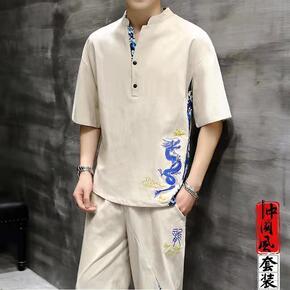 2021夏季套装男中国风男装休闲套装棉麻短袖恤唐装...