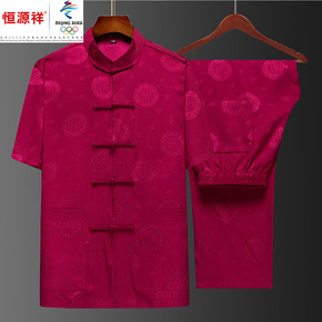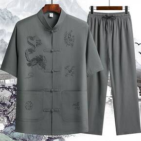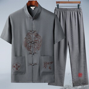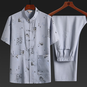 唐装男中老年夏季短袖套装中国风爸爸休闲短袖爷爷装太...