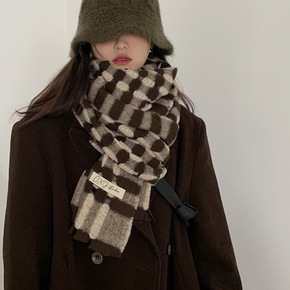 小众加厚格子围巾女2021冬季新款韩版百搭学生披肩...