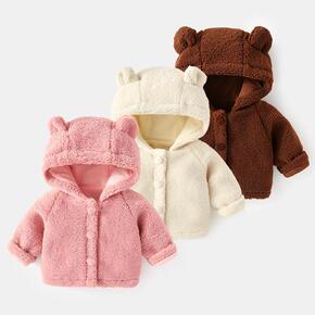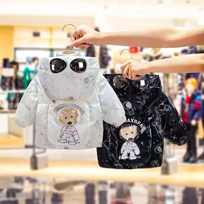 冬季新款立体小熊耳朵印花连帽宝宝棉衣儿童棉服品牌童...