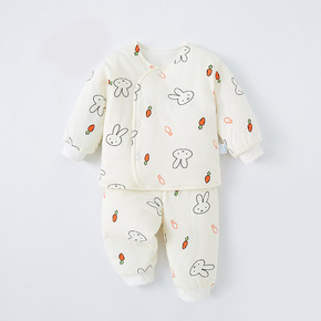 新生儿衣服薄棉套装春秋夹棉和尚服冬季保暖棉服宝宝斜...
