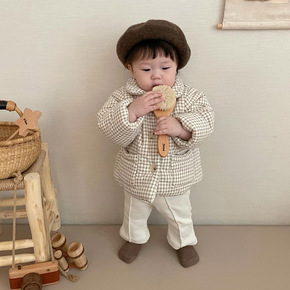 韩版童装加厚棉袄儿童家居服宝宝棉服套装冬季外套格子...