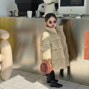 韩国童装2021冬季新款儿童棉衣纯色长款加厚羽绒棉...