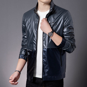 2022春秋季新款男士亮皮夹克时尚立领休闲上衣外套...