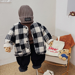 软糯复古~森系韩国男童女童外套洋气时髦秋冬格子薄棉...