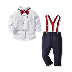 男童装2020年春季款背带裤套装休闲纯棉衬衫两件套...