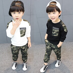 童装男童秋装套装2022新款中大儿童春秋季迷彩服卫...