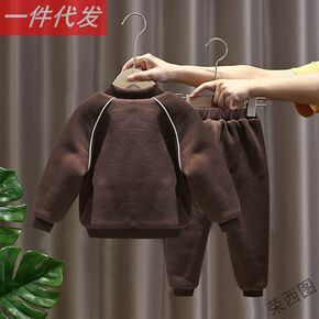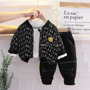 童装男童套装2021秋冬中小童加绒加厚时尚字母印花...