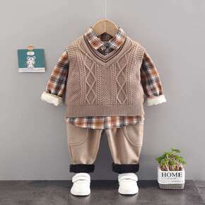 男童装秋冬款加绒三件套装婴儿童洋气毛衣男宝宝加厚冬...
