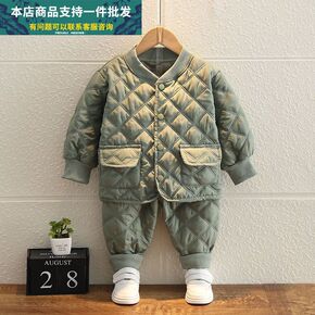 宝宝加厚套装男童秋冬洋气保暖上衣中小童棉衣帅气婴儿...