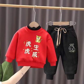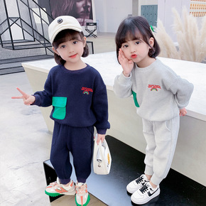 韩国童装儿童套装2021秋冬男女童手抓绒加绒卫衣外...