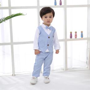新款欧美帅气时尚男童棉马甲西装裤三件套幼儿园表演服...