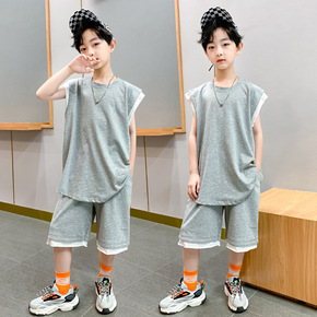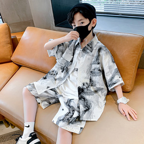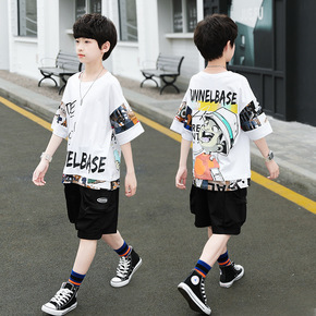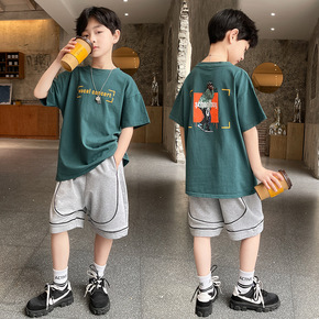 夏装男童套装2022潮男孩T恤中裤两件套学生酷帅短...