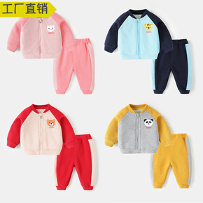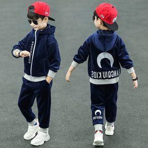 2021新款男孩韩版帅气加厚金丝绒两件套男童秋冬洋...