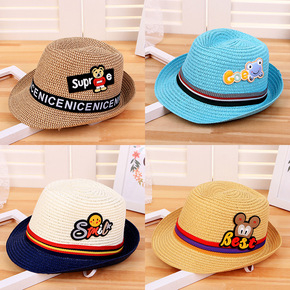 夏季卡通儿童草帽可爱动物男女童太阳帽宝宝防晒沙滩凉...