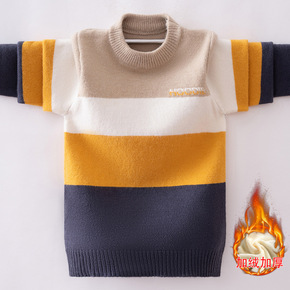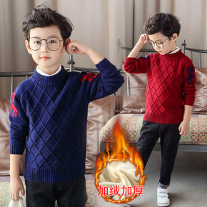 男童毛衣套头针织衫秋冬款中大童加绒加厚打底衫男孩保...
