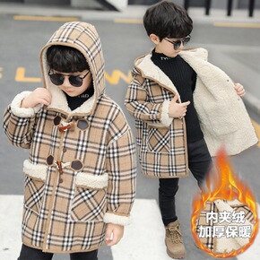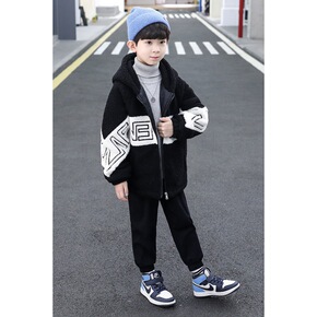 男童加绒外套仿羊羔毛中童冬装2021新款儿童加厚双...