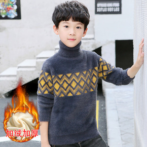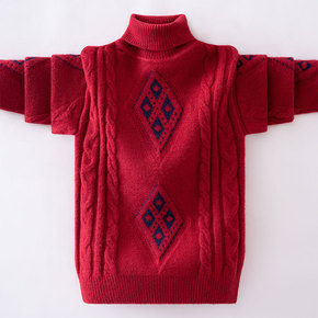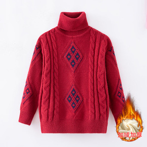 男童套头高领毛衣冬款儿童加绒加厚打底针织衫男孩中大...