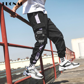 工装裤子男韩版潮流九分裤小脚裤哈伦裤夏季宽松束脚裤...